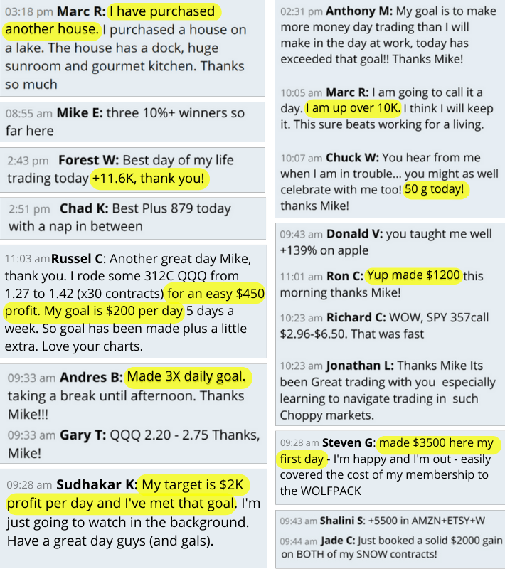 You'll also get Mike's Weekly Watchlist - a list of the names that Mike is looking at for that week (for potential trade setups)...